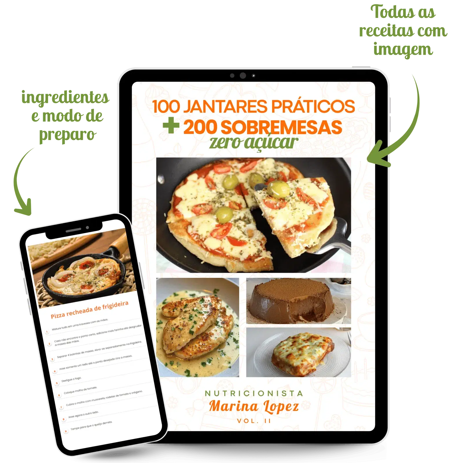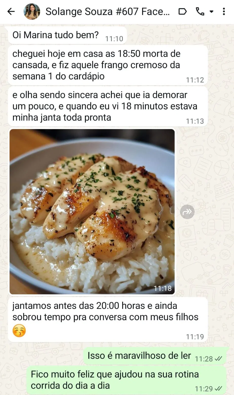 Jante bem sem pensar, sem gastar e sem culpa. Cardápio pronto + receitas rápidas, saudáveis e gostosas entregues direto no seu whatsapp.